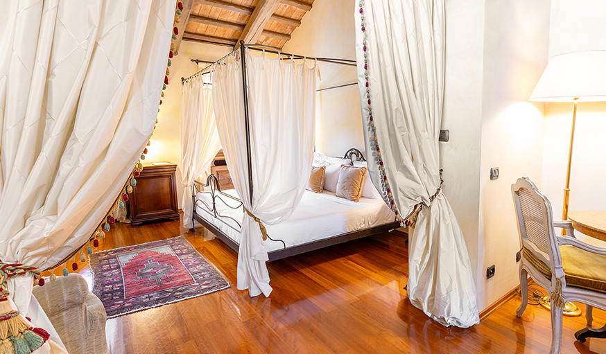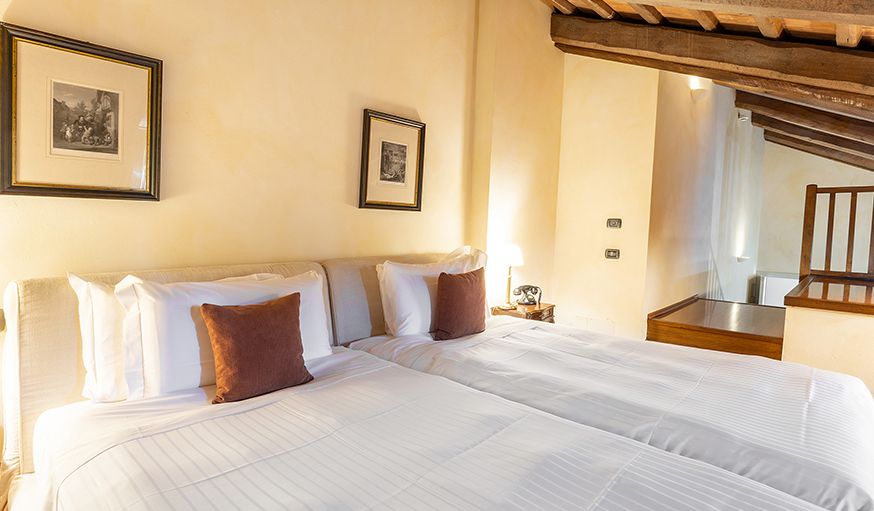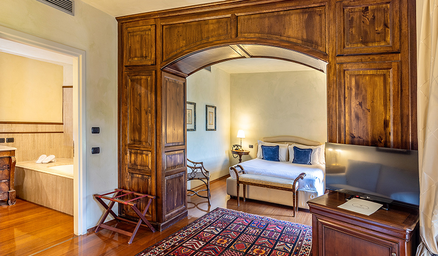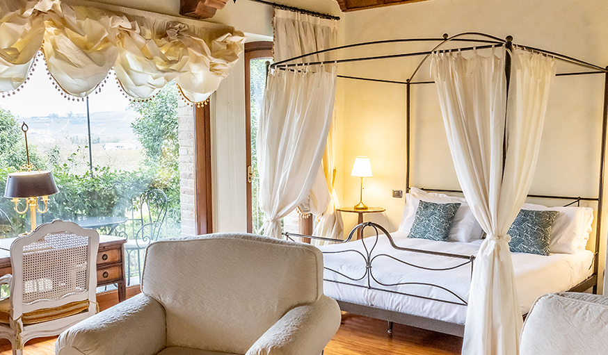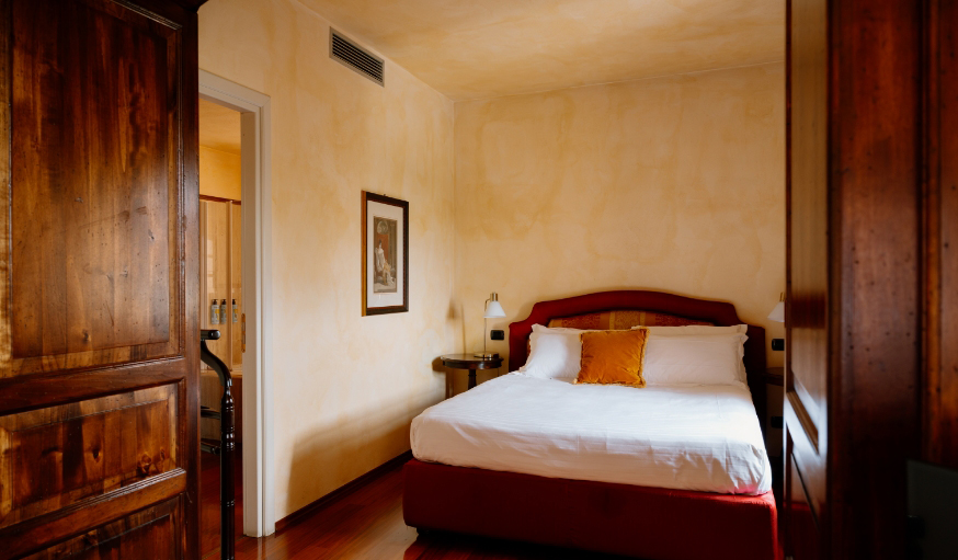 Casa Pavesi accoglie i suoi ospiti in undici camere, tutte diverse, tutte pensate per offrire un’esperienza intima, rilassata, mai standardizzata. Ogni stanza ha un’identità propria ma tutte sono legate da un ambiente caldo, con un arredamento raffinato, boiserie, pezzi autentici. Alcune si affacciano sul Castello, altre aprono lo sguardo sulle colline, tutte sorprendono per la loro elegante bellezza, per gli ampi spazi e per la cura nella scelta dei dettagli.